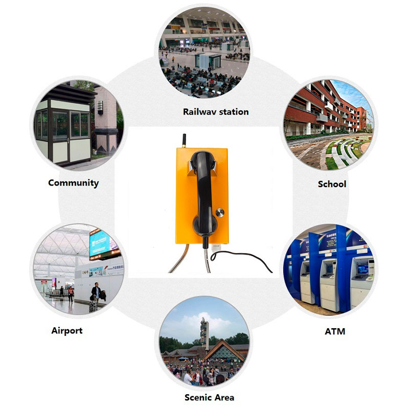 Применяется, как общественный телефон для внутреннего или наружного использования: лифт, таксопарки, автобусные остановки или станции, автомагистрали. железная дорога, метро, сторона банкоматов, туннель, порт, док, шахты и др. Хороший телефон для использования во влажной или коррозийной среде.