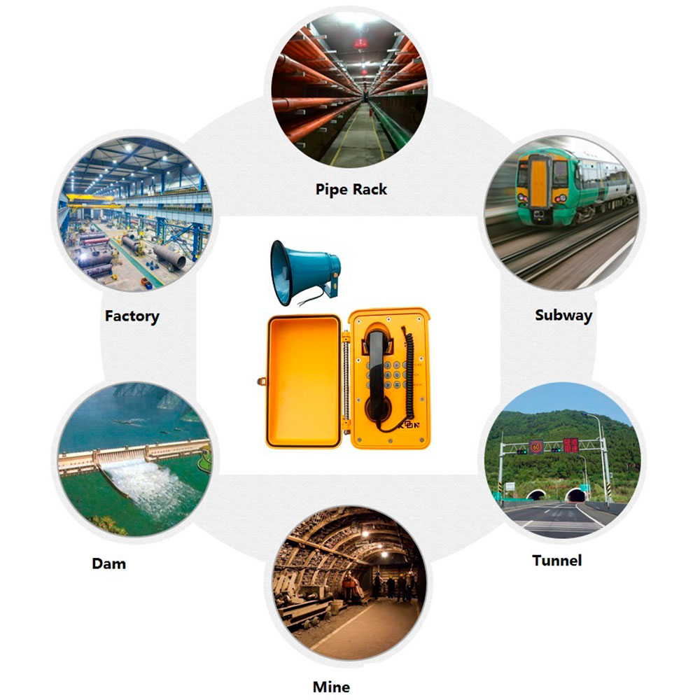 Телефонные громкоговорители широко используются в особо шумных зонах, таких как электростанции и туннели.