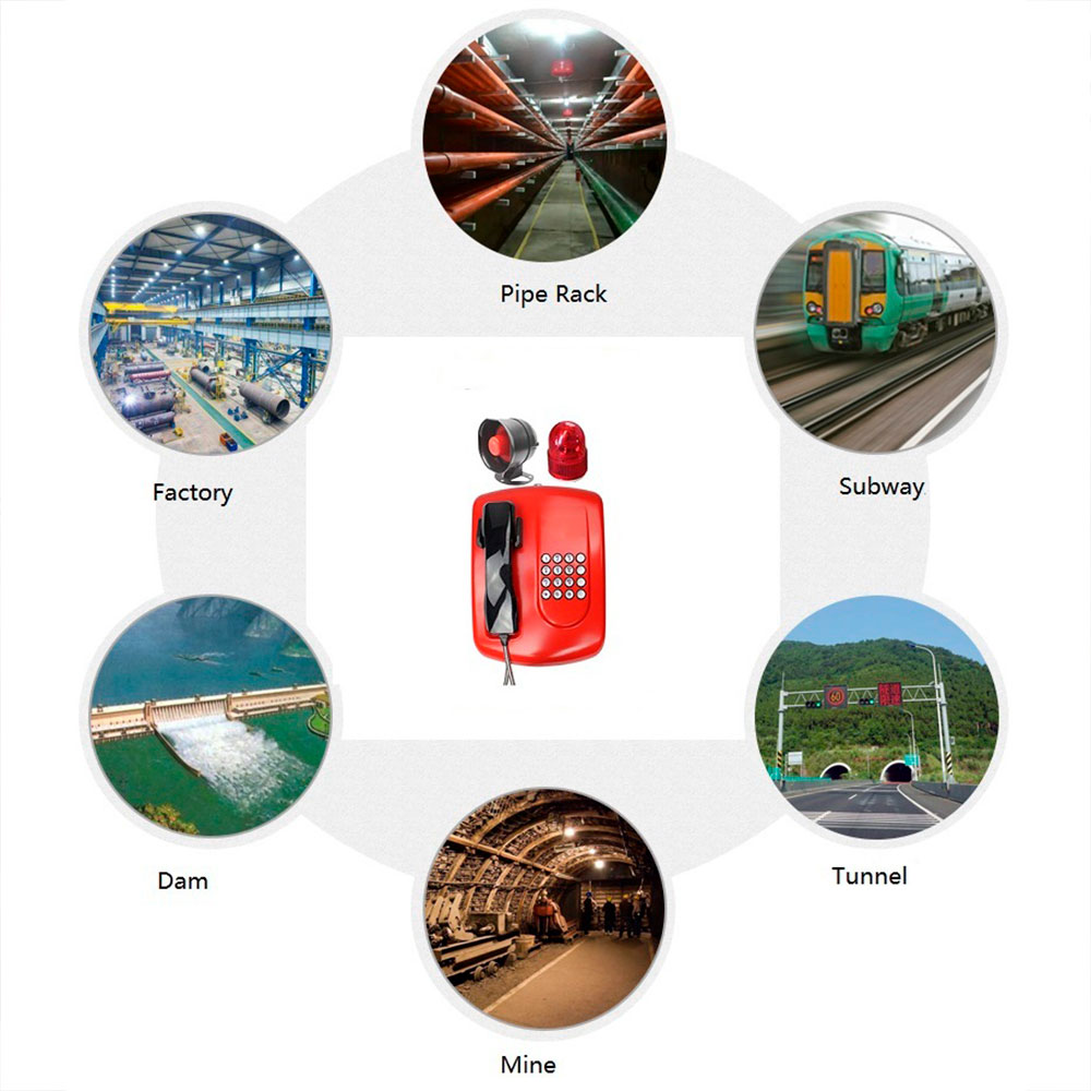 Для наружных электростанций, шахт, обогатительных фабрик, для работы в особо шумной промышленной среде, когда обычный стационарный телефон не может удовлетворить потребности в осуществлении качественной связи, лучшим выбором является водонепроницаемый телефон KNSP-18L с усилением голоса и защитой от шума.