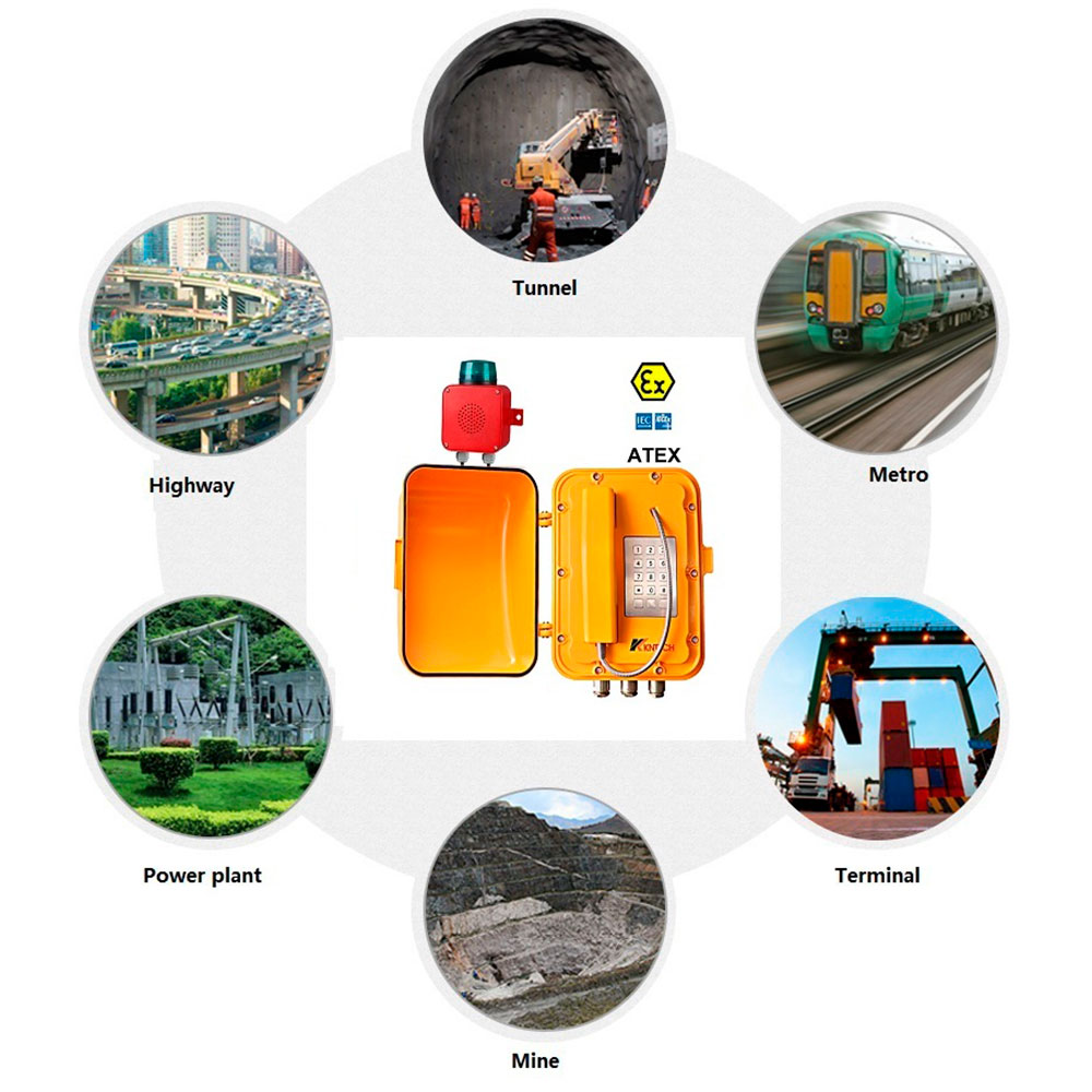 Взрывозащищенные телефоны, используются на электростанциях, в горнодобывающей промышленности, химической промышленности и других легковоспламеняющихся и взрывоопасных местах.