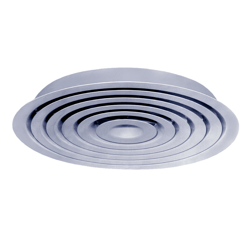 Круглый регулируемый вентиляционный потолочный диффузор может быть плоским и коническим. Подходит для всех видов подвесных потолков.