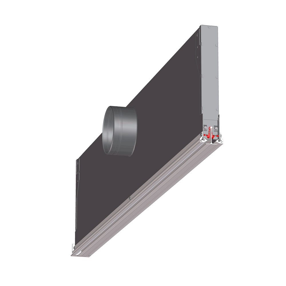 Регулируемая подача воздуха. Линейный диффузор позволяет подавать воздух вертикально, горизонтально и под углом. Направляющие элементы могут быть настроены индивидуально.