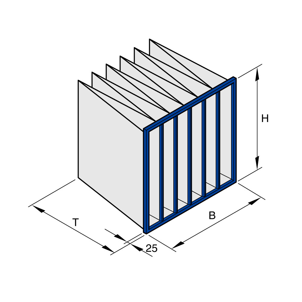 Карманные фильтры PFN изготовлены из материала NanoWave ® и используются в качестве предварительных или конечных фильтров для отделения мелкодисперсной пыли в системах вентиляции.
