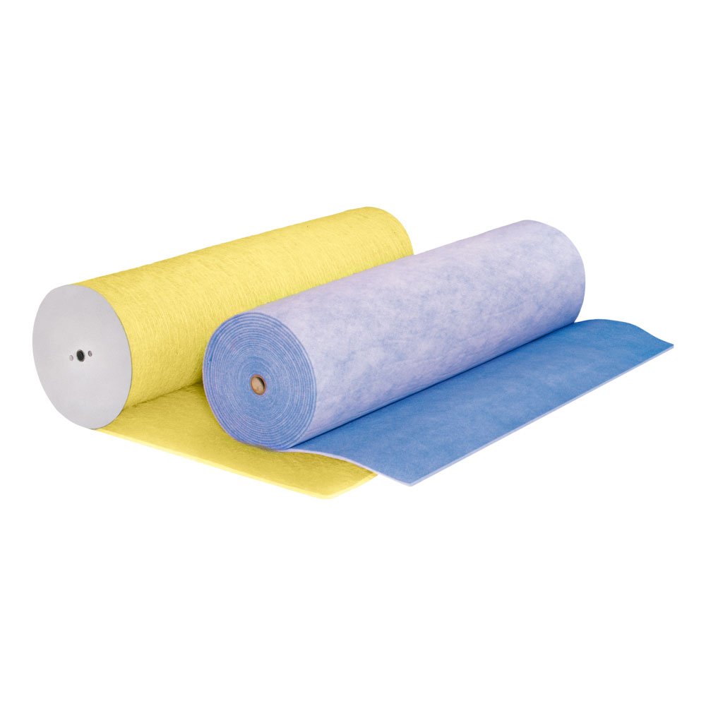 Фильтрующие материалы из стекловолокна опрыскиваются связующим веществом для пыли, что повышает задерживающую способность и предотвращает перенос пыли.