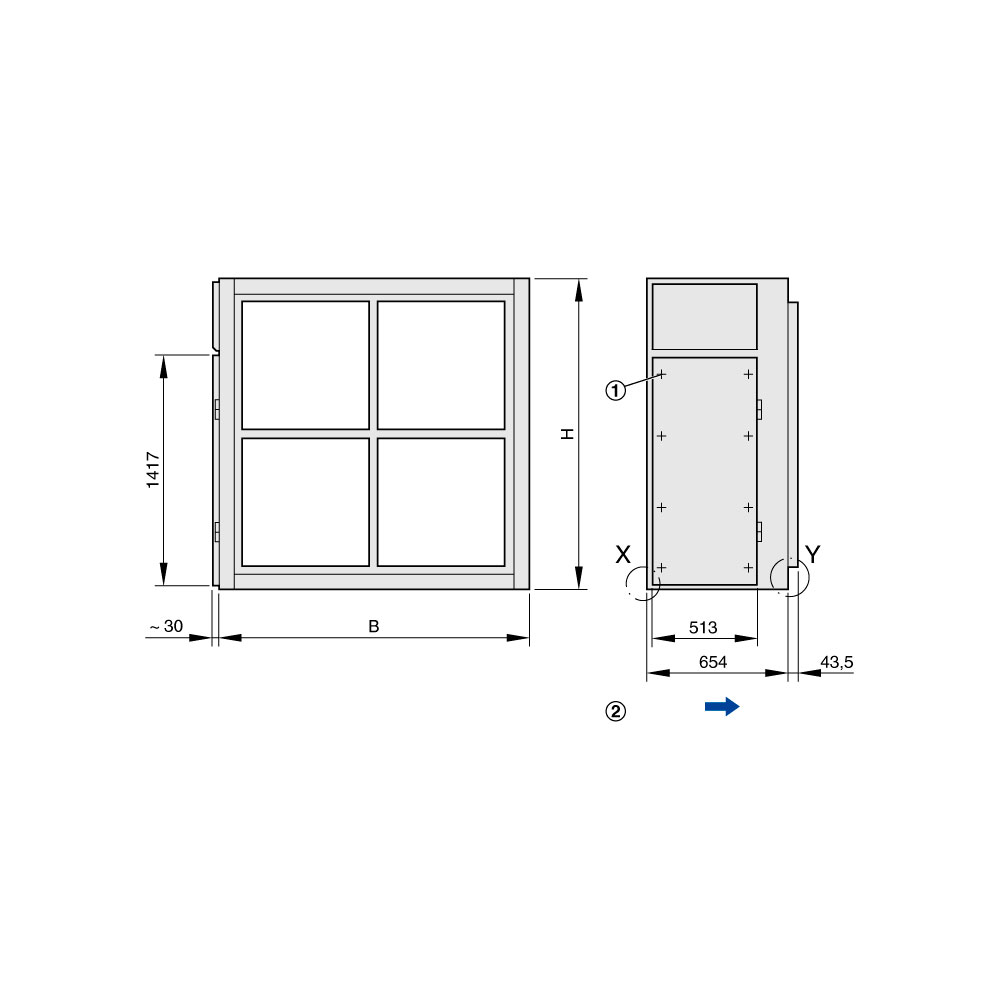 Расположение дверцы слева или справа в зависимости от направления воздушного потока.