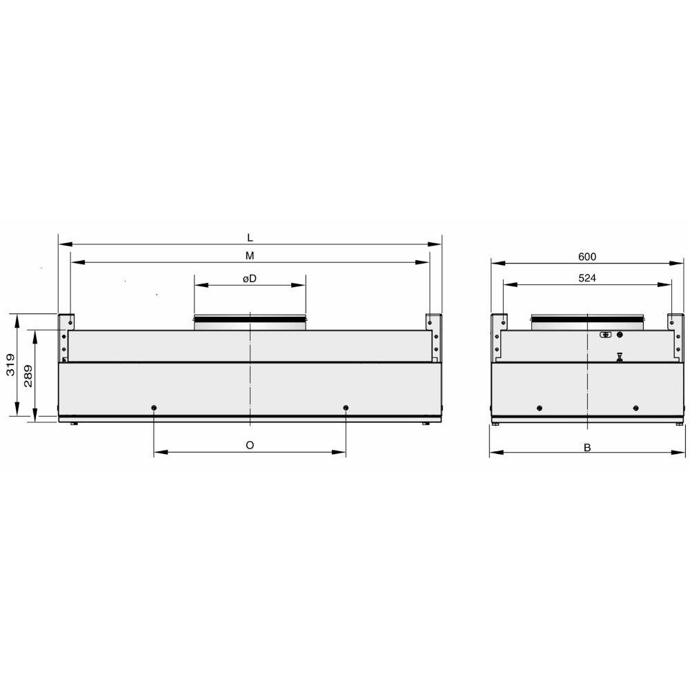 Модуль сажевого фильтра со специальным зажимным механизмом с 2 точками крепления для размеров 600 × 600 или 4 точками крепления для размеров 600 × 900 и 600 × 1200.