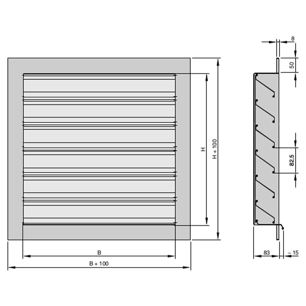 Прямоугольные наружные жалюзи для защиты систем кондиционирования воздуха от прямого попадания дождя, листьев и птиц в отверстия приточного и вытяжного воздуха.