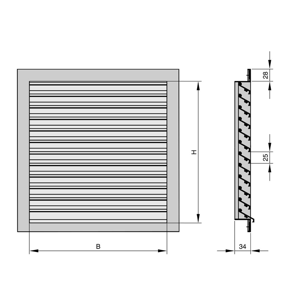 Прямоугольные наружные жалюзи для защиты систем кондиционирования воздуха от прямого попадания дождя, листьев и птиц в отверстия приточного и вытяжного воздуха.