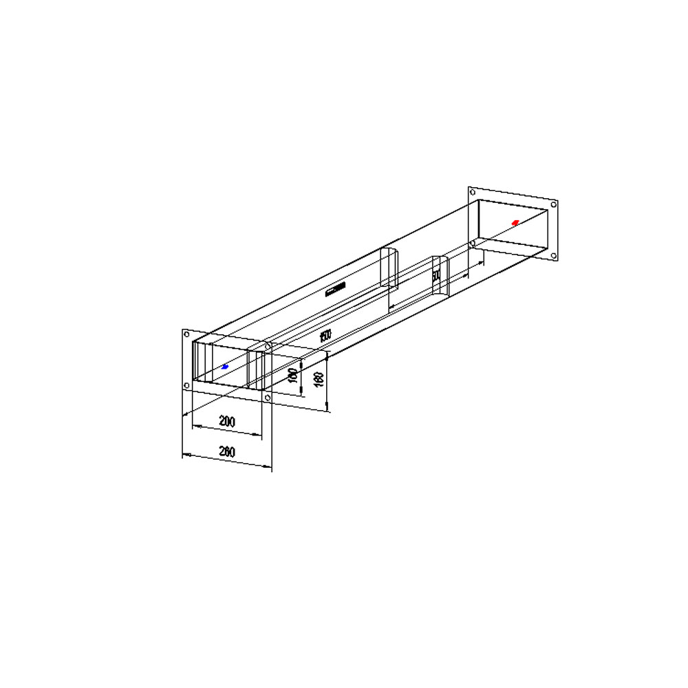 Rectangular secondary silencers for VAV terminal units to reduce the air-regenerated noise, available in 43 nominal sizes. Splitters with aerodynamically profiled frames. Connecting flanges on both ends, suitable for 30 mm duct connection. Casing air leakage to EN 15727, class A. Complies with VDI 2083, clean room class 3, and US standard 209E, class 100.